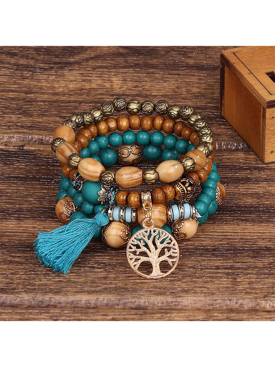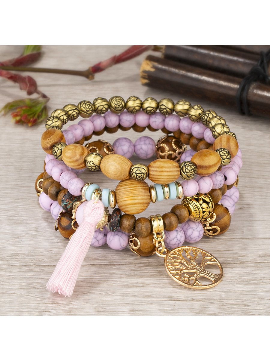 Boho Multi-layered Wooden Beaded Bracelet